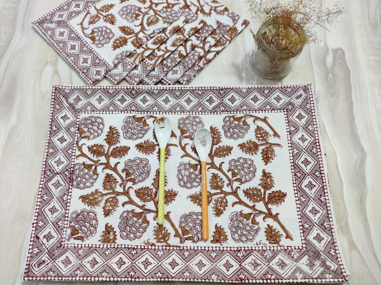 Berries Printed Placemats are block printed canvas cotton placemats inspired from the nature with border.