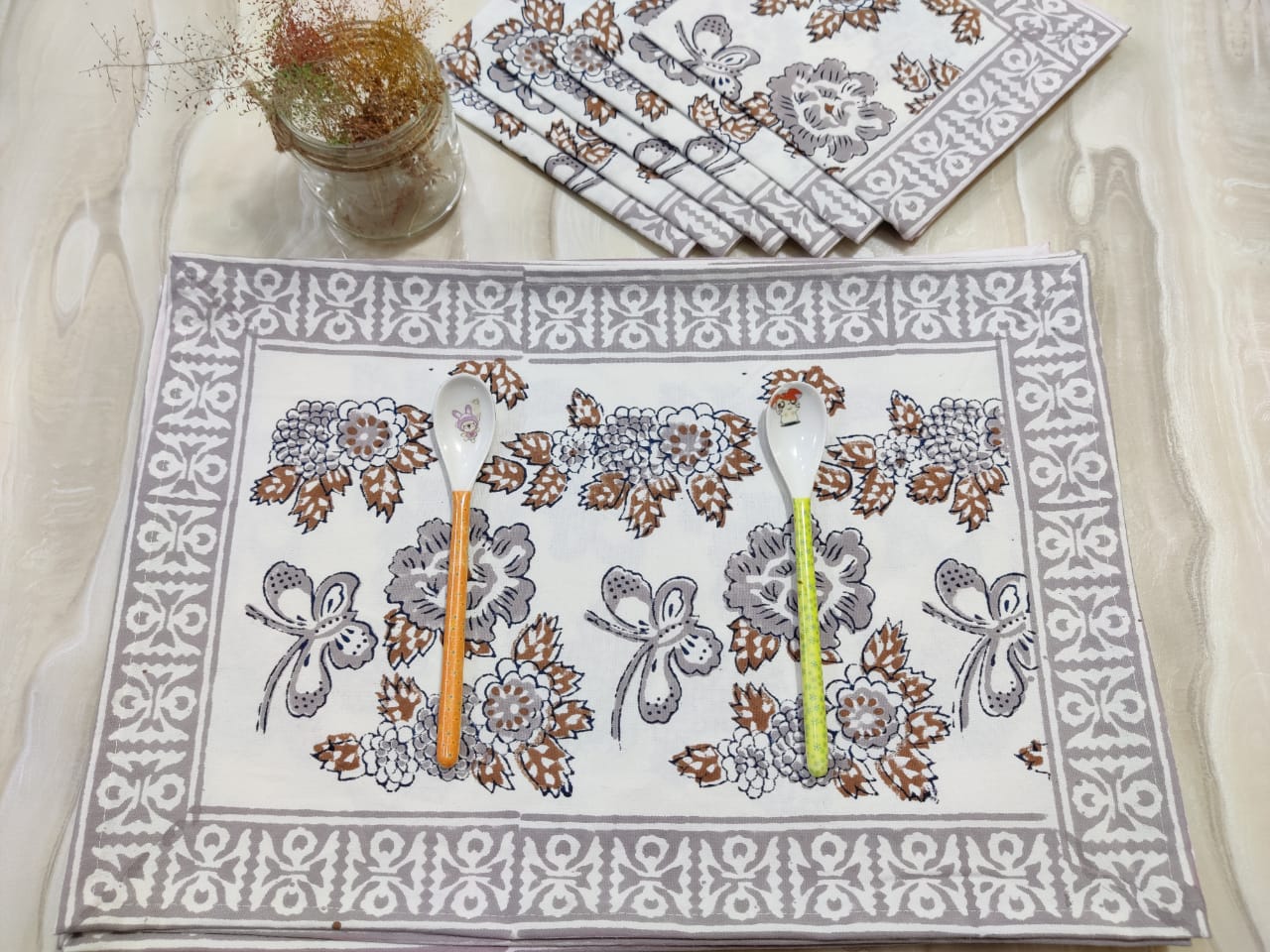 Butterfly Printed Placemats are canvas cotton block printed framed with lovely border. Our butterfly print symbolises a walk in the woods and appreciating the paradise on earth. A pleasant butterfly pattern that will liven even the dullest of spaces pairs well with our butterfly print napkins.