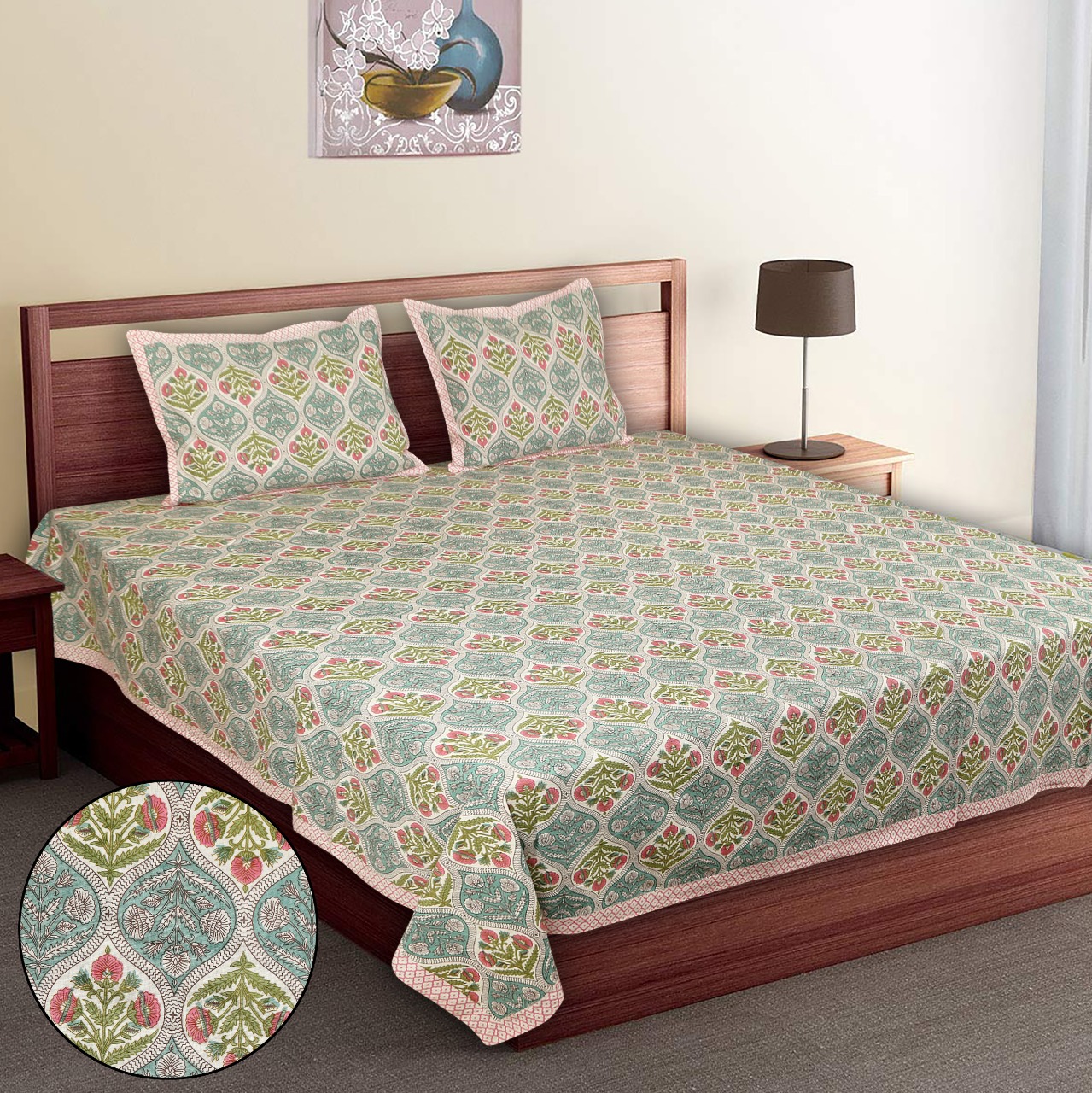 • Package Content – 1 Double Bed Bedsheet & 2 Pillow Covers