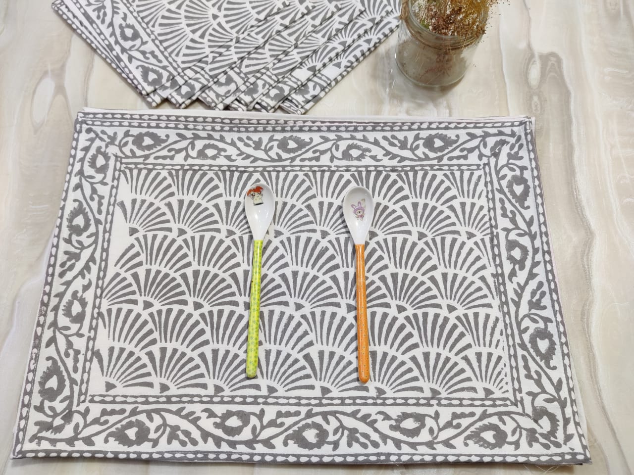 Size – Matt – 14 x 20 inches (35 x 50 CM) , Napkin – 18 x 18 inches (45 x 45 CM)